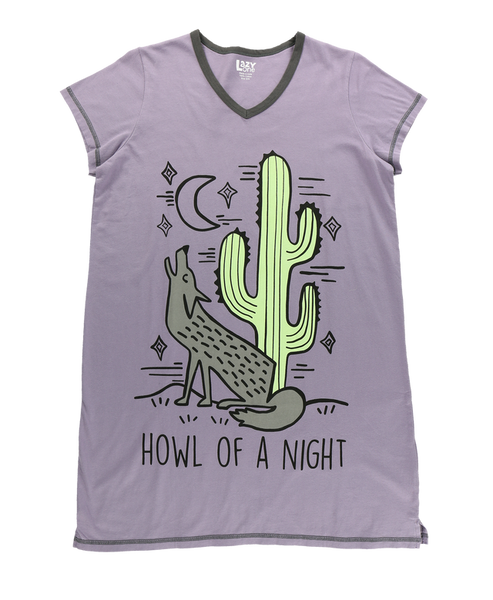 Sing through the night with this wolf nightshirt. Nightshirts come in two sizes and feature a singing wolf declaring it to be a 'Howl of a Night'. Wolves and corny puns - what could be better? 100% cotton.
