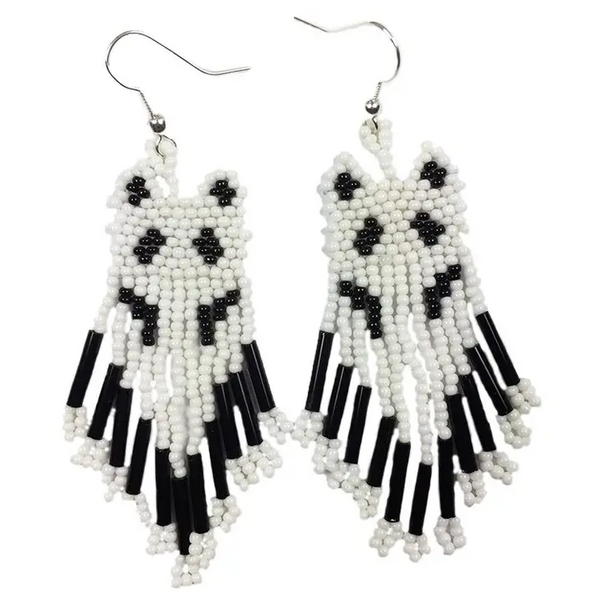 Add a touch of nature-inspired elegance to your look with these Handmade beaded wolf pattern Hook Earrings. Crafted with care, these earrings feature a stunning wolf pattern created with Czech beads.